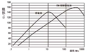 图2EMI抑制铁氧体 图3铁氧体随频率变化的阻抗分量