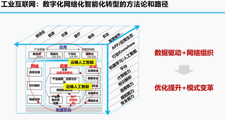 工业互联网的核心是数据驱动的智能优化闭环,通过对工业系统实时数据的采集、传输、处理、分析、决策与反馈控制,并与工业知识相结合,形成新的优化范式,不断改进物理世界的运行效率,创造更大的价值。这一“数据驱动 + 工业知识”的智能优化闭环,也是工业互联网驱动制造业数字化转型的核心方法论。