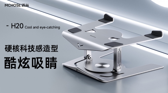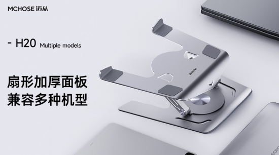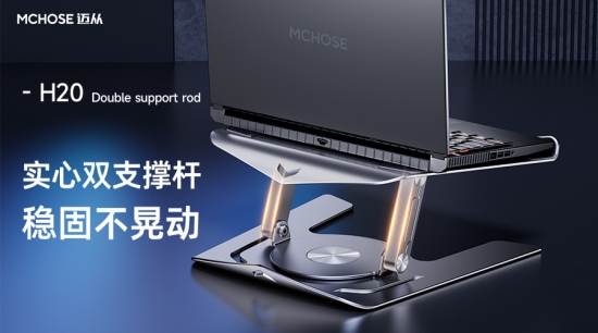 MCHOSE迈从H20支架采用实心双杆撑杆设计,双臂是实心的增加支架的支撑力,角度也不容易变形,承重高达10KG,轻薄本、大本还是游戏本都能轻松放置,也不用担心掉落问题。