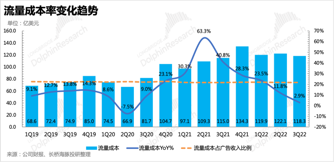 只不过这部分稳定的投入虽然保证了满足用户浏览视频的供给,但最终的商业化效果受到了需求方广告主的压制。上个月公司宣布YouTube Shorts将于明年开启广告收入分享,分成比例高达50%,在拓展收入的同时,毛利率可能也会被拉低。