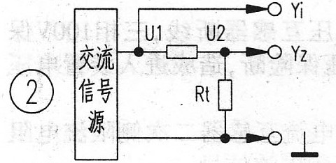 测量方法:分别把图2中的U1、U2接入Yl、Y2通道,调整信号源的输出电压幅度,直到屏幕上显示出满意的U1、U2正弦波为止。用已被预先加热的电烙铁(20W~35W)靠近热敏电阻,同时观察U2的变化情况:若U2的幅度上升,说明Rt为正温度系数热敏电阻;反之则为负温度系数热敏电阻。若随着温度的增加或降低U2的变化很灵敏,则说明此热敏电阻性能良好。