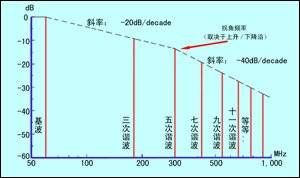 图1 上升/下降时间为1ns的理想60MHz方波的频谱