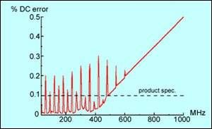 大多数模拟设备的抗扰度问题是由射频解调引起的。运放每个管脚都对射频干扰十分敏感,这与所使用的反馈线路无关(见图3),所有半导体对射频都有解调作用,但在模拟电路上的问题更严重。即使低速运放也能解调移动电话频率及其以上频率的信号,图4表明了实际产品的测试结果。