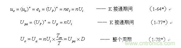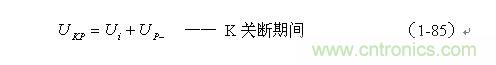 根据图1-17,加到开关器件(控制开关)两端的峰值电压UKP正好等于输入电压Ui与反电动势峰值Up-之和,即: