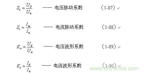 因此,电压和电流的脉动系数Sv、Si以及波形系数Kv、Ki分别表示为: