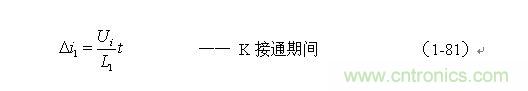 在流过正激式开关变压器初级线圈N1的电流i1中,除了i10之外还有一个励磁电流?i1。所谓励磁电流,就是令变压器铁芯产生磁通量 的电流。在变压器铁芯中,磁通量 的变化,只与流过变压器初级线圈中的励磁电流?i1有关,而与流过变压器次级线圈中的电流无关。即:在控制开关K接通期间,流过变压器次级线圈N2中的电流i2产生的磁通,完全被流过变压器初级线圈N1中的另一部分电流i10产生的磁通抵消。从图1-18-c)中可以看出,?i1就是i1中随着时间线性增长的部分(假设i2不变)。变压器初级线圈N1中的励磁电流?i1由下式给出: