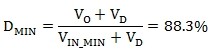 根据公式2,如果需要实现在VIN=5.7V下,保证VO=5V。 那么最大占空比为,