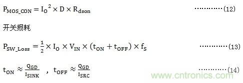 MOSFET承受的最高电压为 VINMAX , 考虑到抛负载保护,选取耐压40V以上的MOS。MOSFET的损耗,可由以下公式估算,