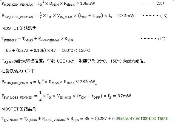 其中, IO 为输出电流, Rdson为上管MOSFET的导通电阻,DCR 为电感的直流阻抗。