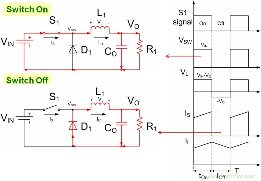 Buck电路是最常用的降压开关电源。图1所示为非同步的Buck电路。