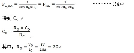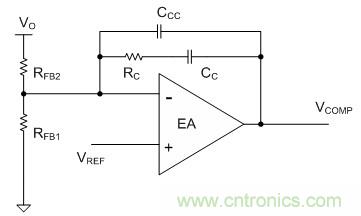 因为电路采取用瓷片电容,所以不用去消除由ESR造成的零点。CCC 不接。 如果采用的是电解电容则需要把反馈电路的极点放到主电路ESR零点附近。可根据下式计算CCC