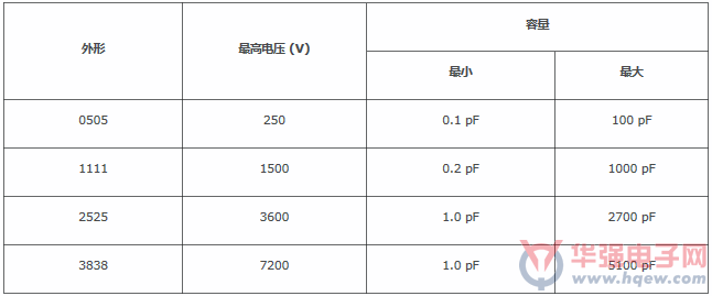 QUAD HIFREQ系列器件采用贵金属电极(NME)技术和湿法制造工艺生产,工作电压范围达到200V~7200V,容量从0.1pF到5100pF,采用0505、1111、2525和3838外形尺寸。器件每十年的老化率为0%,工作温度为-55℃~+125℃。