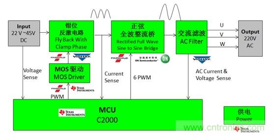 •输入 22V ~ 45V 直流•输出 220V 50Hz 交流•输出功率 200W•数字控制•交错反激拓扑结构