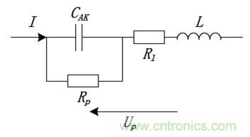 AC-DC电源转换器,要实现交流到直流的变换,首先需要将交流电压经过整流滤波后形成一个稳定、平滑的直流电压给自身及外部器件供电。而电解电容由于具有单位体积内电容量大、额定容量大(可实现法拉级)、价格低廉等优点,常成为常规开关电源中整流滤波的关键器件。电解电容是由铝圆筒做负极,里面装有液体电解质,插入一片弯曲的铝带做正极制成,电解液在高温和低温等极端条件下,非常容易漏液和干涸,从而使其电气属性发生变化,最终导致电容失效。一旦铝电解电容失效,因其剧烈反应形成压力,就会释放出易燃、腐蚀性气体,导致AC-DC模块电源失效。根据铝电解电容的物理结构,可以用图 1中所示的电路等效,其中CAK代表两电极间的理想电容量;Rp 是并联电阻,代表了电容的漏电流成分;Rl 代表了电容引出端及电极部分的串联电阻成分;L 代表了引出线和连接处的等效串联电感成分。