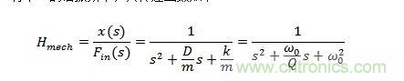 微机械式惯性传感器已经成为许多消费产品的一个组成部分,比如手持式移动终端、照相机和游戏控制器等。此外,微机械式惯性传感器还被广泛用于工业、汽车安全和稳定控制以及导航领域中的振动监测。一般来说,微型传感器可以是压电式、压阻式或电容式传感器。然而,电容式传感的高热稳定性和高灵敏度使得它对种类广泛的应用来说更具吸引力。带数字读取功能的基本的电容式传感器接口电路由电容到电压转换器(C/V),以及随后的模数转换器(A/D)和信号调节电路组成。以开环配置(没有反馈信号)运行这种传感器可以形成相对简单的系统,这种系统本身就比较稳定。尽管如此,开环工作时的系统对MEMS参数会非常敏感。此外,整个系统的线性度受传感器系统链中每个模块的线性度影响,而且C/V和A/D的动态范围要求可能会更加严格。相反,将MEMS传感器放在负反馈闭环中使用有许多好处,例如改进的带宽、对MEMS器件的工艺和温度变化具有较低的敏感性。另外,由于C/V只需要处理误差信号,与开环工作方式相比,C/V动态范围和线性指标可以放宽。因此为确保系统的稳定性,正确设计反馈环路就显得非常重要。在电容式传感器中,反馈信号以电容激励电极上的电压信号形式施加到MEMS。这个施加的电压将产生一个静电力并作用到MEMS质量块上。因此最终形成的系统被称为力反馈系统。然而,电容有一个二次的电压比力关系,它会限制系统的线性度。克服电压比力(V/F)二次关系负担的一种方法是以差分方式施加激励信号,以便抵消二次项。然而,这种技术要求正负电压值,这将增加传感器接口ASIC的复杂性。更重要的是,差分工作所需的两个激励电容如果不匹配会导致激励二次项不能完全抵消,因此电容不匹配将限制系统可实现的性能。实现闭环工作的另外一种方法使用两级bang-bang反馈信号。由于只用到两个点的二次V/F关系,这种方法天生就是线性的,而且并不依赖MEMS电容的匹配或使用负电压去抵消非线性。使用两级激励意味着将反馈信号幅度中的信息转换为时间信息。因此Σ-Δ调制可以成为实现闭环数字读取传感器的一种有效技术。另外,基于Σ-Δ的环路默认提供模数转换功能,因此不需要再使用单独的A/D。Σ-Δ闭环架构代表了高性能数字读取传感器的最优架构。值得注意的是,Σ-Δ系统的超采样特性会使操作系统工作在相对较高的频率,因此系统变得较易受MEMS寄生电容耦合的影响。尽管如此,抵消这种耦合的电路技术已经非常成熟,并且可以在传感器的接口ASIC中实现。Σ-Δ闭环传感器的架构选择需要依据为电子Σ-Δ系统开发的深层技术。然而,具有自然电子-机械特性的Σ-Δ闭环传感器在系统级设计与优化时需要正确理解MEMS的工作原理和建模机制。典型MEMS传感器的检测部分行为就像是一个二阶集总式质量块(阻尼器)弹簧机械系统,具有单一的谐振频率,其传递函数如下:
