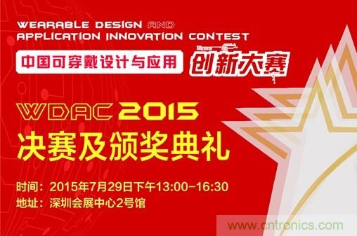 决赛入围作品(按作品提交顺序)WDAC2015003:Fitband健康智能手环WDAC2015006:RWATCH智能遥控圆表R11WDAC2015009:云狐AWATCH运动手表WDAC2015011:凡爱智能甲醛检测仪WDAC2015012:GEAK Watch II(果壳智能圆表)WDAC2015022:UME WATCH智能腕表WDAC2015029:宜准智能跑步表G3WDAC2015035:智能运动鞋垫WDAC2015036:智能体温监测标签贴WDAC2015042:W-watch智能手表 2015年7月29日下午,WDAC2015决赛将于深圳会展中心2号馆与首届中国智能装备产业博览会暨第四届中国电子装备产业博览会同期举行。届时,将进行6个单项奖和若干入围奖的角逐。单项奖包括最佳产品概念奖、最佳外观设计奖、最佳技术创新奖、最佳应用方案奖、最佳显示效果奖,以及综合优胜奖。