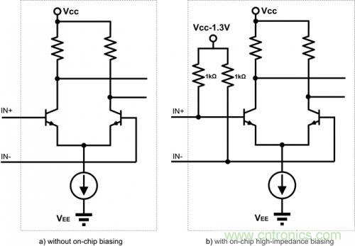 PECL 的输入是一个具有高输入阻抗的差分对,该差分对的共模电压需要偏置到VBB =VCC-1.3V,这样允许的输入信号电平动态最大。对于不同芯片的输入级,信号允许的共模电平可能会有些差异,请参考相应的datasheet。有部分芯片在内部已经集成了偏置电路,使用时直接连接即可,有的芯片没有加,使用时需要在芯片外部加直流偏置。