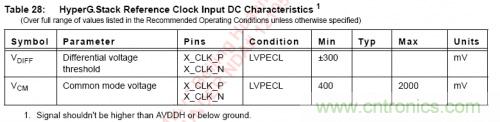 如某器件的某输入口工作在LVPECL模式下。其指标如下(AVDDH=2.5V):