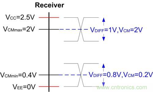 对于差分信号,要关注的指标是输入共模电平VCM和差分信号VDIFF范围。