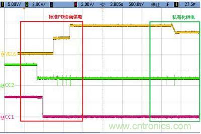 图6.基于Cypress CCG2方案的PD协议的充电器供电协商波形