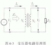 图6-3 是变压器的电路原理图。N1和N2分别为初级和次级线圈绕组的匝数。初级线圈的两端接入交流电压V1,使铁心内产生磁场.次级线圈便会产生感应电动势V2。如果忽略铁心、线圈等的损耗.则: