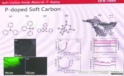 钠离子电池和锂离子电池的反应机理相近,正极材料除了磷酸盐或氟化磷酸盐以外,还可以用镍锰层状过渡金属氧化物。在负极材料方面可选择碳类、合金和化合物。在三大类负极材料中,我们还是选择最便宜的碳材料。我们对于负极碳材料又进行了软碳、硬碳和石墨烯三个分类的研究。