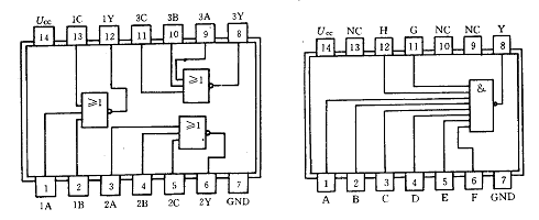 TTL器件的典型产品为54族(军用品)和74(民用品)两大类。下面给出部分常用器件管脚排列和功能说明。