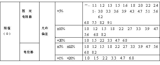 ⑵电位器的标称值见表6-1-4、6-1-5。