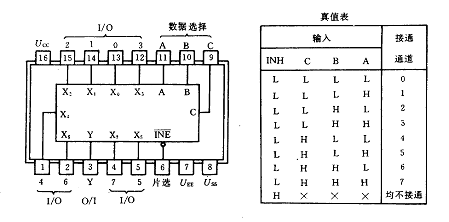 图6-3-13 CC4051 逻辑功能管脚图及真值表