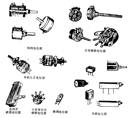 电位器的种类繁多,用途各异。常见电位器的结构如图6-1-3所示。