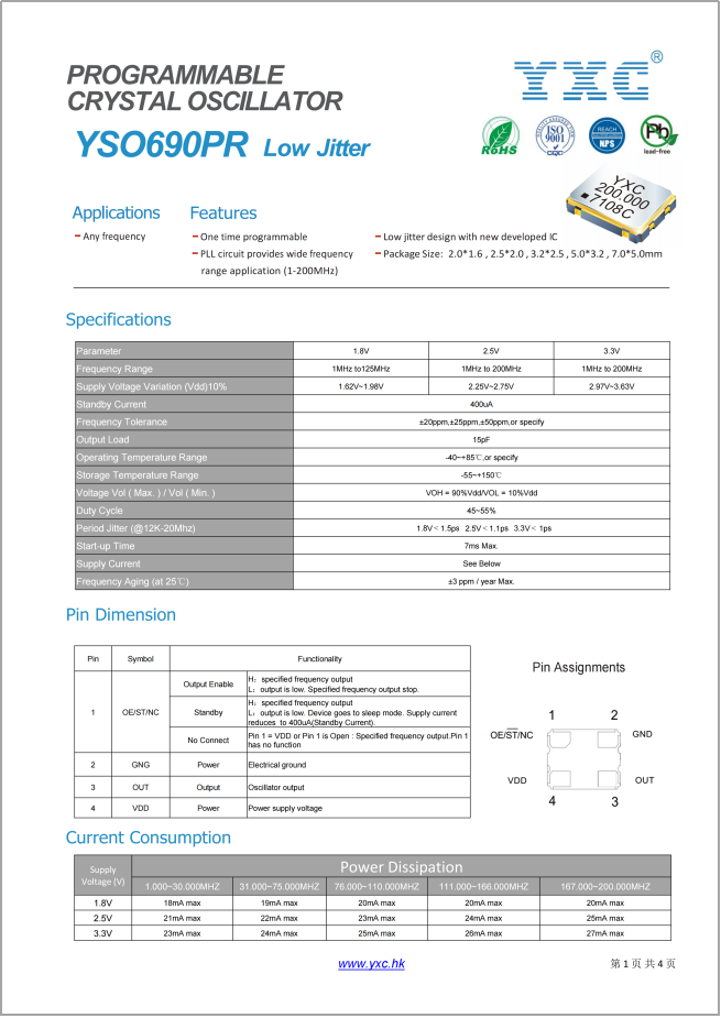 针对交换机晶振应用需求的高稳定性、高频/偏频、低抖动、低相噪等特点,推荐:【YXC可编程石英振荡器YSO690】【YXC差分可编程振荡器YSO210PR】
