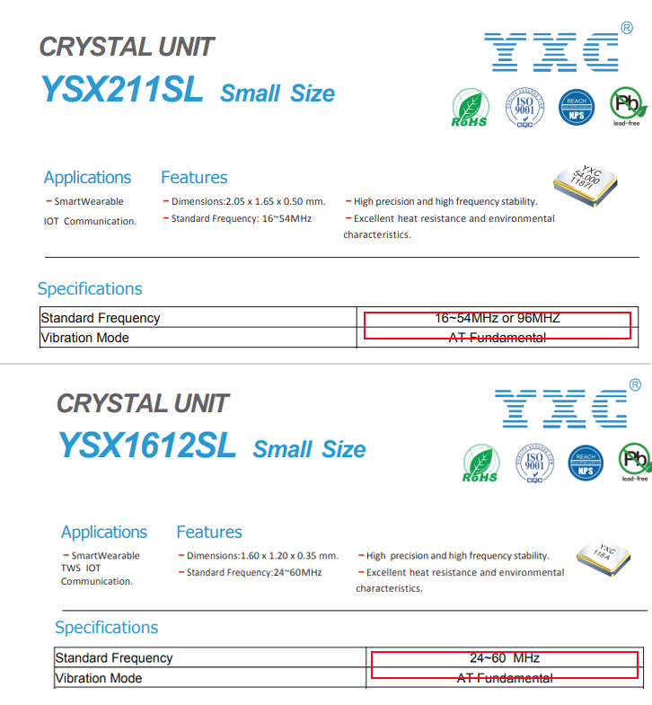 因此物理上石英晶体(指无源谐振器)在2.0x1.6mm封装中提供不能低于16MHz的频率或在1.6x1.2mm封装中不能提供低于24MHz的频率。在电路设计中,从较大尺寸的石英晶体更换到较小尺寸的石英晶体时需要考虑到这一点。