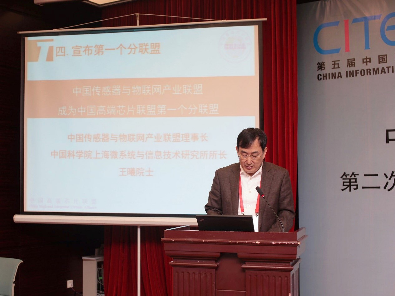 中国传感器与物联网产业联盟理事长王曦院士致辞并发言。资料图